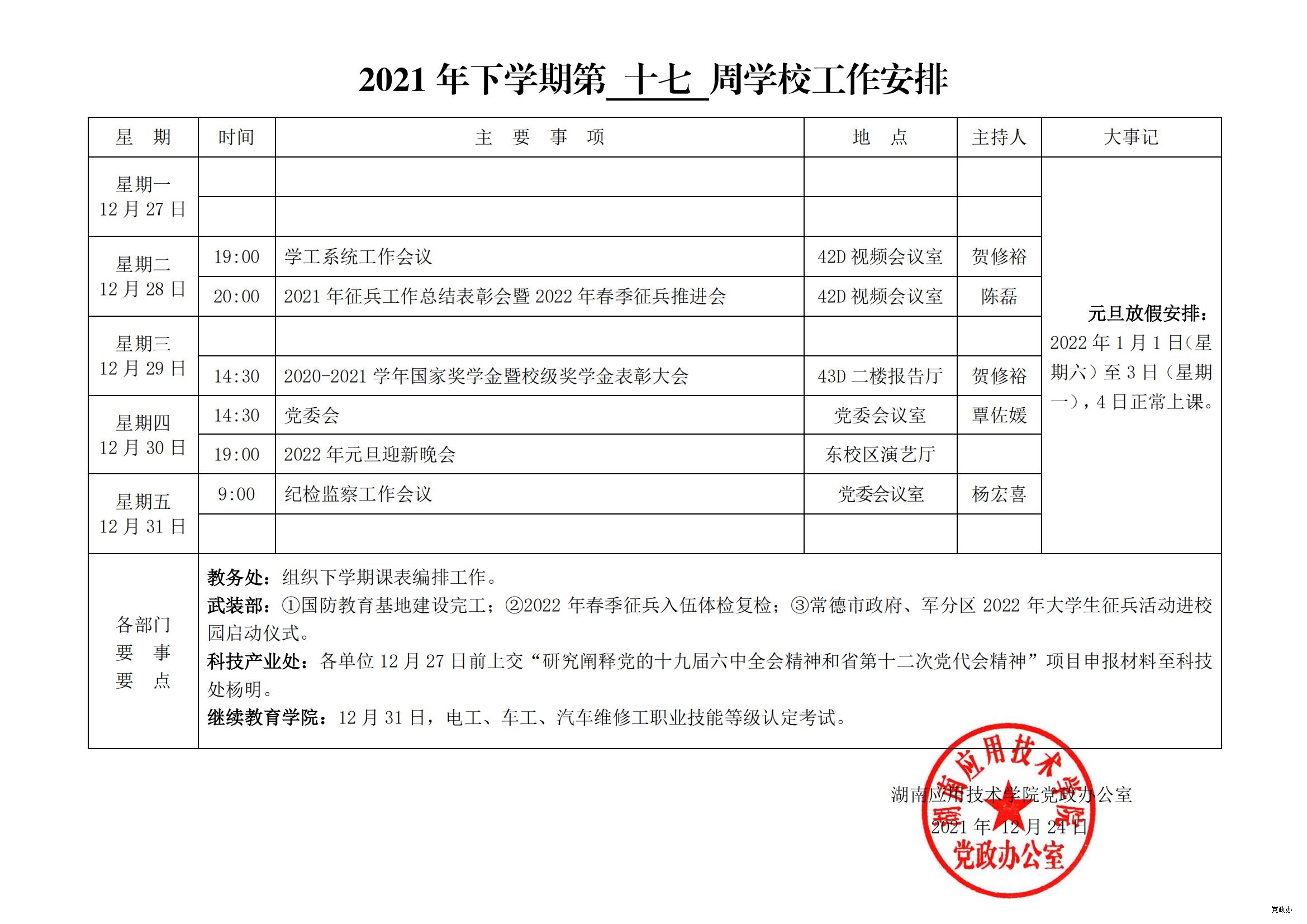 2021年下学期第十六周学校工作安排