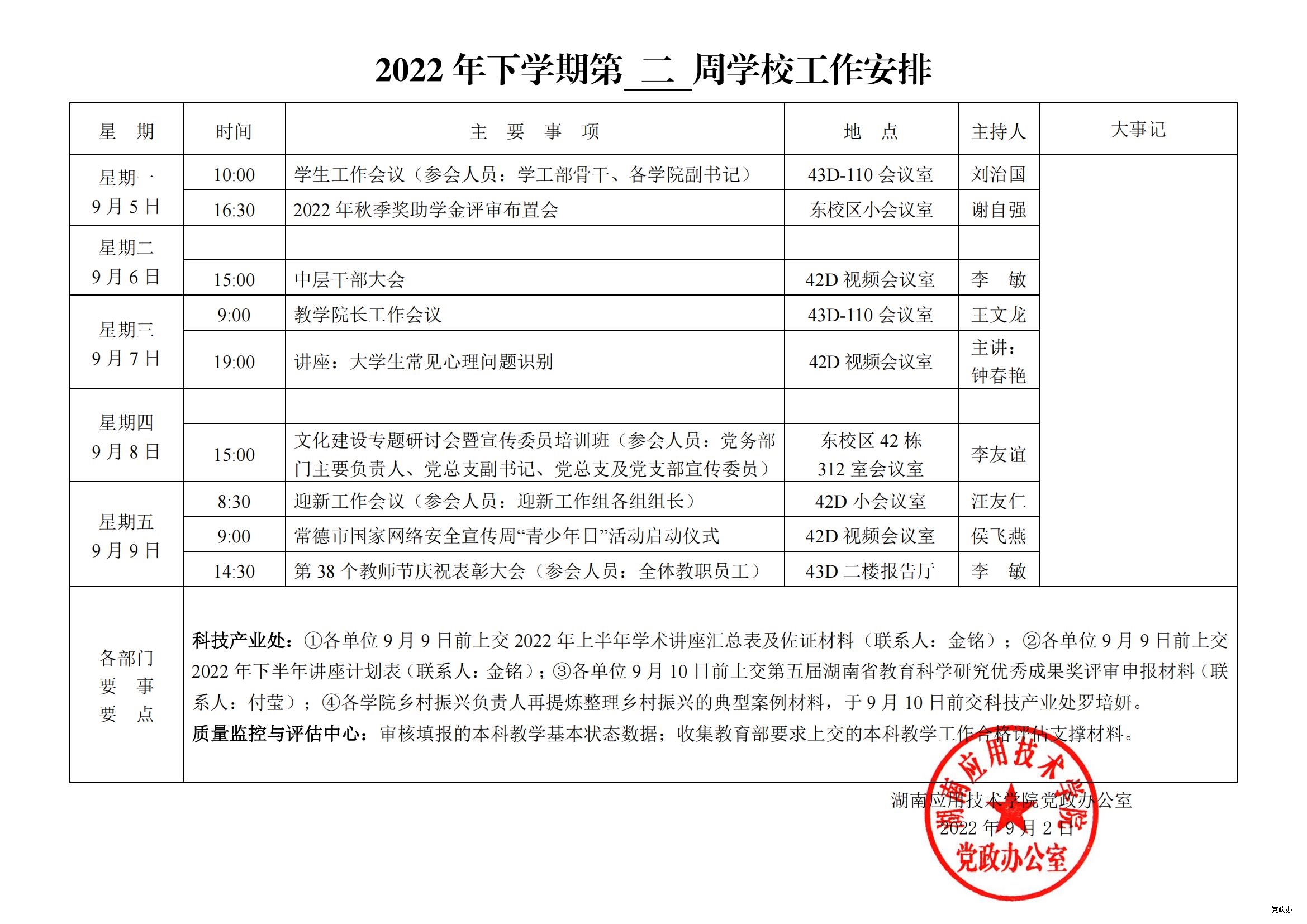 2022 年下学期第 二 周学校工作安排