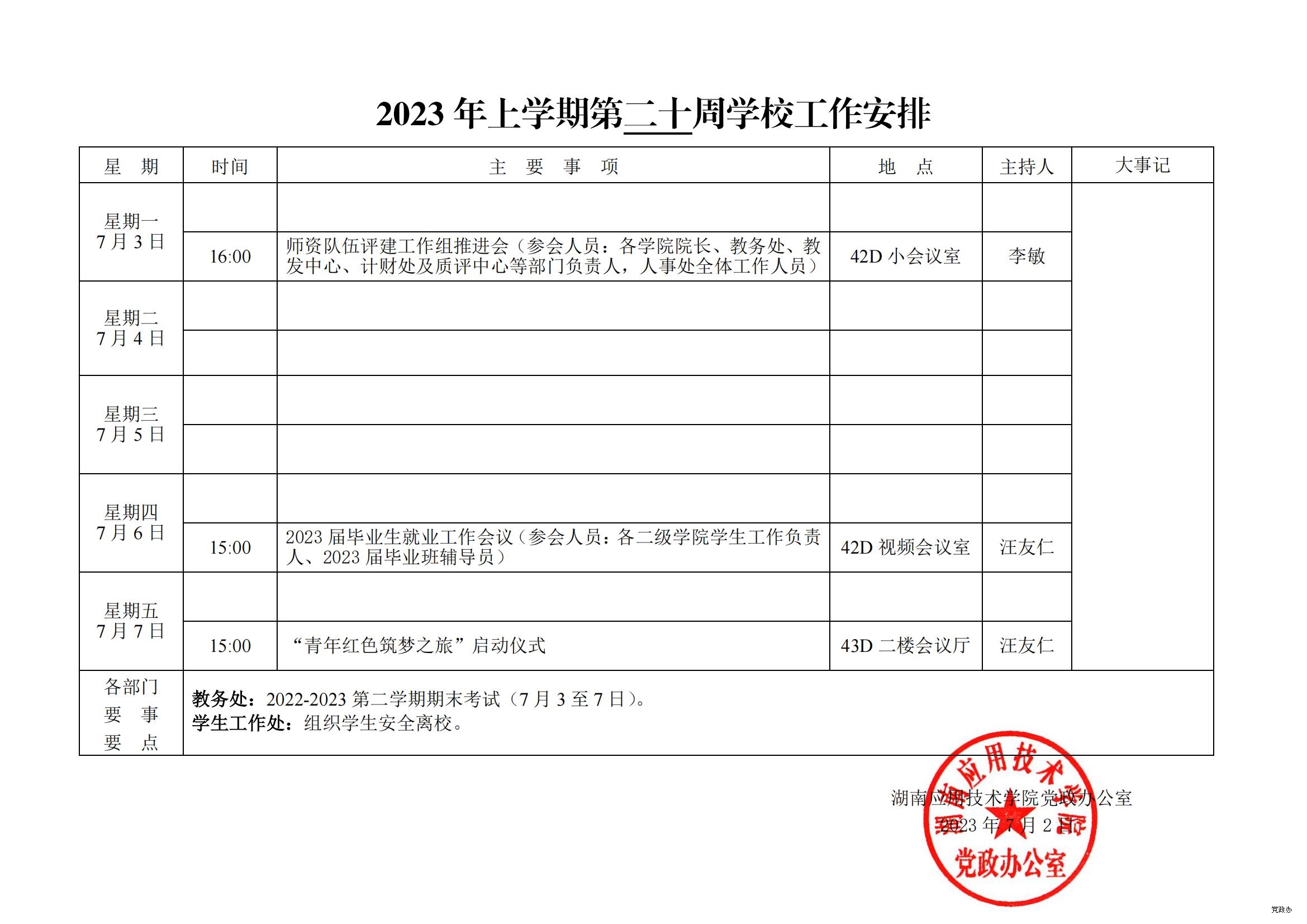 2023 年上学期第 十九 周学校工作安排